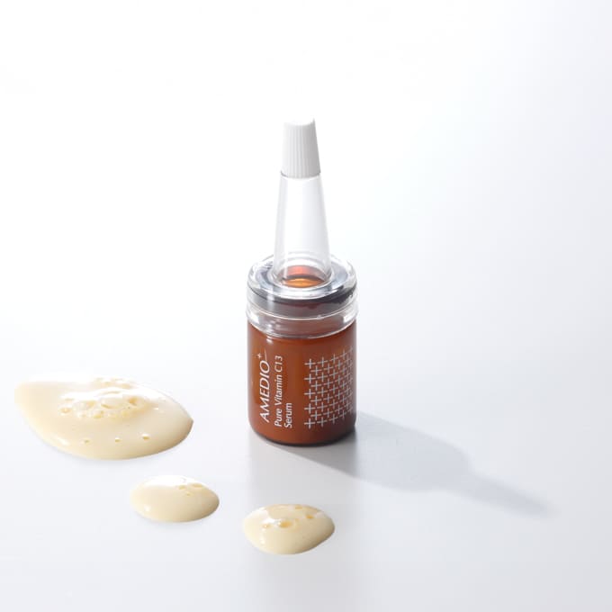 | 特徴 | 【濃密※1ピュアビタミンC※2を採用したマルチ処方美容液】 これまで製品化は難しいとされていたピュアビタミンC※2の浸透性※3を克服した独自のマルチ処方 【濃度13%のピュアビタミンC※2配合】 美容医療の現場で使われるビタミンCの濃度が平均9~10%なのに対し、AMEDIO+の美容液のピュアビタミンC※2の濃度は13%と濃密※1配合し、自宅ケアでも即効性※4を実感。 【10種以上の美容成分を独自にマルチ処方】 ヒアルロン酸の約16倍の保水力があり刺激性を和らげる※5と言われているβグルカンは、特殊技術で生産した低分子(約40万)のものを採用。 その他にも、グルタチオン、パンテノール、ヒアルロン酸などを配合し、ピュアビタミンC※2による乾燥や刺激を感じづらい処方に。 使い続けることで実感できる肌育のために作られた独自処方の乳液タイプ美容液で、ビタミンCの効果をブーストすることが可能に。 パッチテスト済み ※すべての方に刺激が起こらないということではありません ※1 しっとりとしたテクスチャーのこと ※2 アスコルビン酸(肌を整える成分) ※3 浸透は角質層まで ※4 化粧品で一般的に使用されるビタミンC(アスコルビン酸誘導体)は他成分と結合していて、体内で誘導体部分が切られてビタミンCへ変換され効果を発揮するまでステップを要する一方、ピュアなビタミンC(アスコルビン酸)は角質層へ浸透後にビタミンCが本来持っている効果作用を発揮します。 ※5 スティンギングテスト実施済み。全ての方に刺激が起こらないということではありません。 |